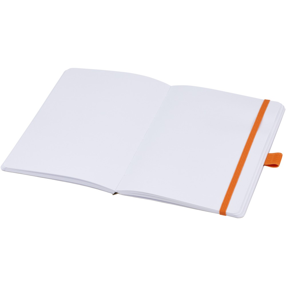 Jegyzetfüzet újrahasznosított vonalas lapokkal (70 g/m2), lekerekített sarkokkal, színes gumi záródással és az 107384-es tollszínhez illő tollhurokkal.