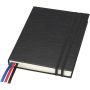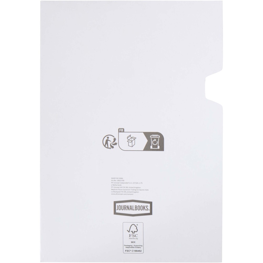 Az Alder A5 jegyzetfüzet újrahasznosított, bőrszerű műanyagból készült, és 192 lap 80 g/m2 krémszínű papírt tartalmaz napi tervező elrendezéssel - ideális naplóíráshoz és az egész éves rendszerezettség megőrzéséhez. Két gumipánttal, három szalagos könyvjelzővel (fekete, piros és kék), 200 színes kis öntapadó jegyzettel (színenként 40 db), valamint egy praktikus papír zsebbel rendelkezik a laza jegyzetek számára. Hátlapján dombornyomott JournalBooks logó található, fehér papírtokban kerül átadásra.