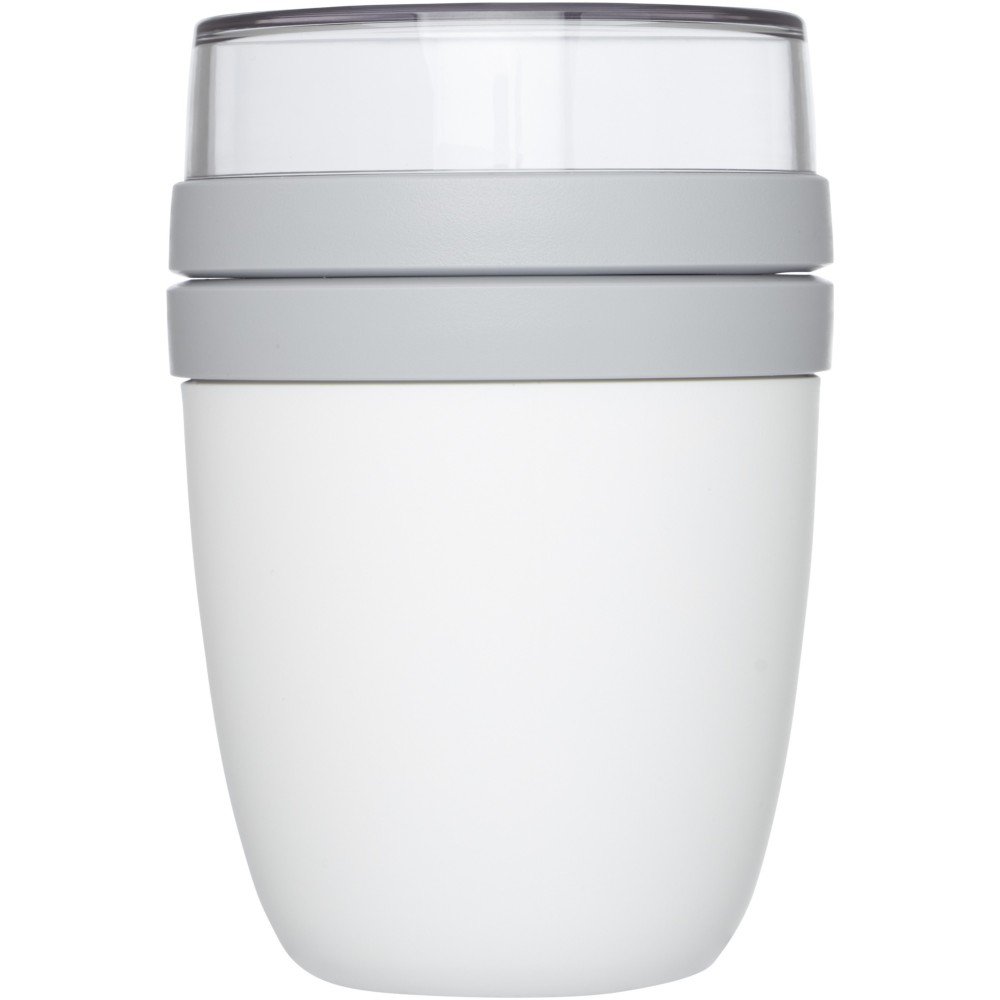 Ételtartó edény két rekesszel. Mindkét tartálynak külön fedele van. A felső, átlátszó rész űrtartalma 200 ml. Az alsó edény 500 ml-es. Fagyasztóba, mikrohullámú sütőbe (fedél nélkül), és mosogatógépbe tehető. A felső, átlátszó rész nem tehető mikrohullámú sütőbe. Szivárgásmentes. BPA mentes. PP műanyag, PCTG műanyag.