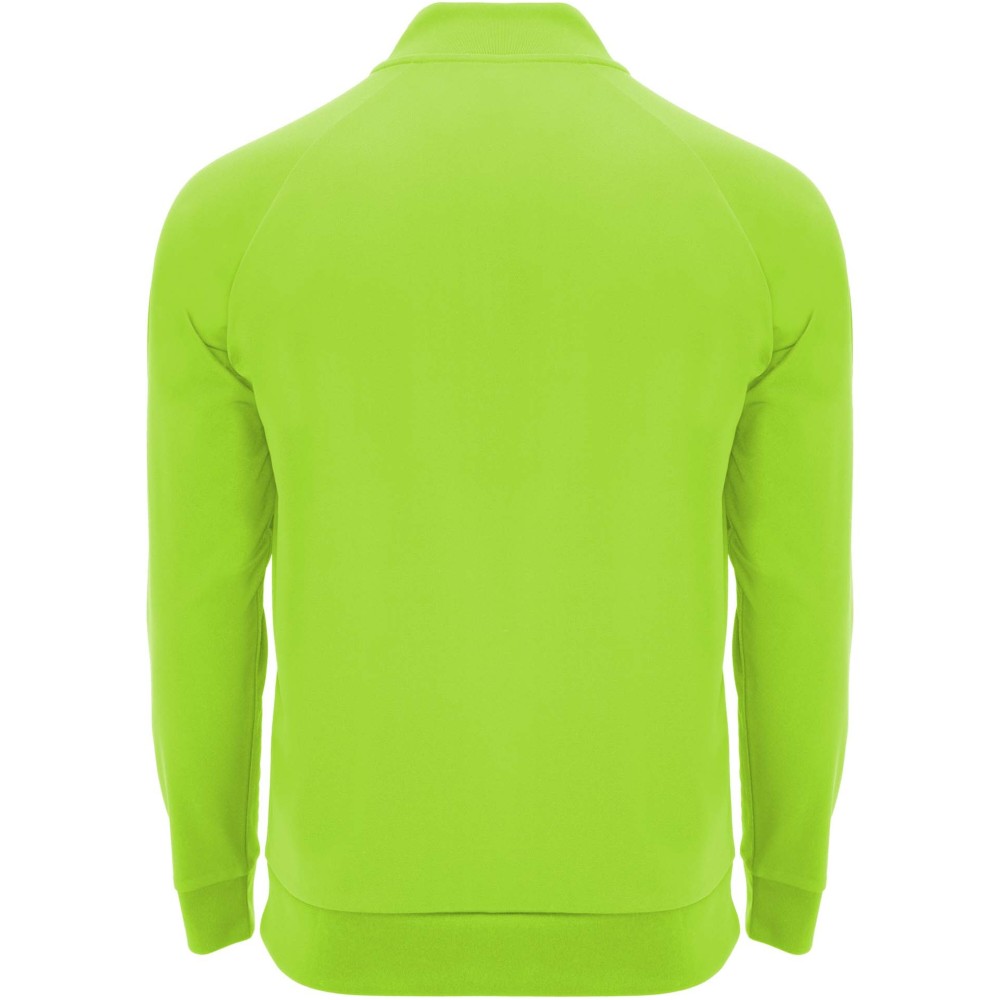 Technikai anyag. Raglán ujjak. Belül bolyhos anyag. Negyedcipzár azonos színű megerősített, fedett öltésekkel. Bordázott nyak-, ujj- és aljpasszé. Eltávolítható címke.