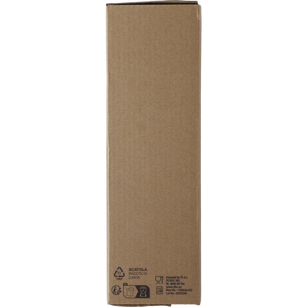 800 ml-es duplafalú palack. A belső 304-es, a külső 201-es rozsdamentes acélból készült. Csavaros PP kupakkal, mely fogantyúként és erős, mágneses telefontartóként is használható. Mosogatógépben nem tisztítható. Csomagolása barna papírdoboz.
