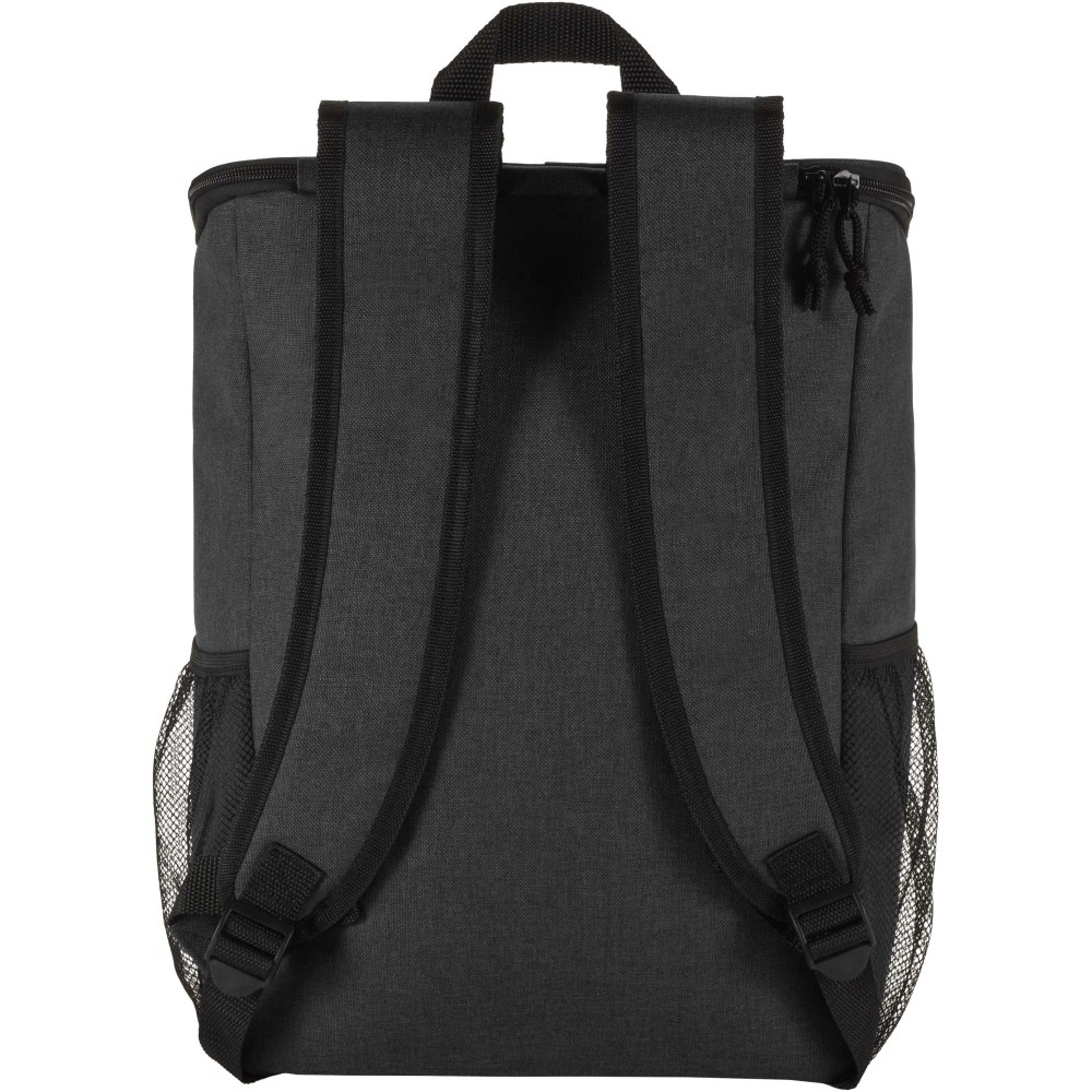 A Tundra piknik hűtőhátizsák GRS tanúsítvánnyal rendelkező újrahasznosított anyagokból készült, és egy kétszemélyes, élelmiszerbiztonsági szempontból tesztelt műanyagból készült, többször használható evőeszközkészletet is tartalmaz. A szivárgásmentes főrekesz nagy sűrűségű habszigeteléssel és hegesztett PEVA béléssel biztosítja az ételek és italok hűtését órákon át. A praktikus kialakítás érdekében a termék két oldalsó hálós zsebbel, egy evőeszközökkel (két kés, két villa, két pohár és két tányér) felszerelt cipzáras elülső zsebbel, valamint egy felső kiegészítő cipzáras zsebbel rendelkezik. A 20 literes űrtartalmú hátizsák a párnázott, állítható vállpántok és a stabil hevederes hordfül segítségével kényelmesen szállítható, így ideális kiegészítő piknikezéshez, szabadtéri étkezésekhez, kempingezéshez vagy strandoláshoz.