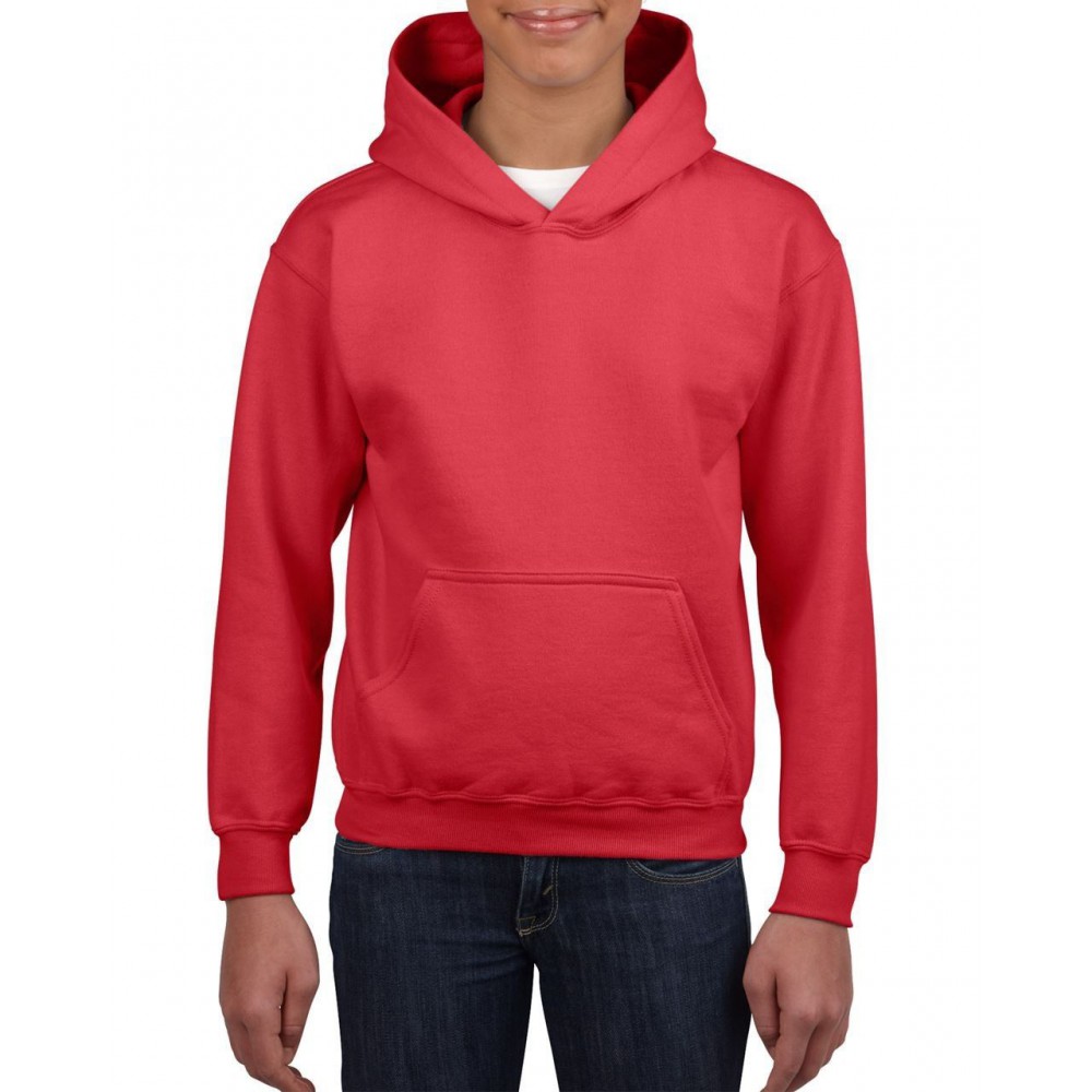 Gildan Heavy kapucnis gyerekpulóver, Red