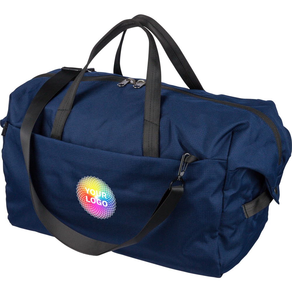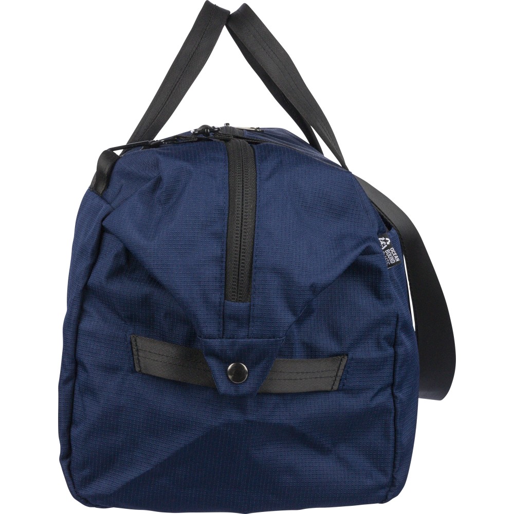 RPET 300D Ocean Bound anyagból készült sporttáska, amely újrahasznosított óceáni műanyagból készül, tartós és texturált felületű kivitelben. 33,7 literes űrtartalommal rendelkezik, nagy fő rekesszel, elülső cipzáras zsebbel és belső cipzáras tárolóval. Két erős fogantyúval, állítható vállpánttal és Ocean Bound Plastic alapanyagra utaló címkével ellátva.